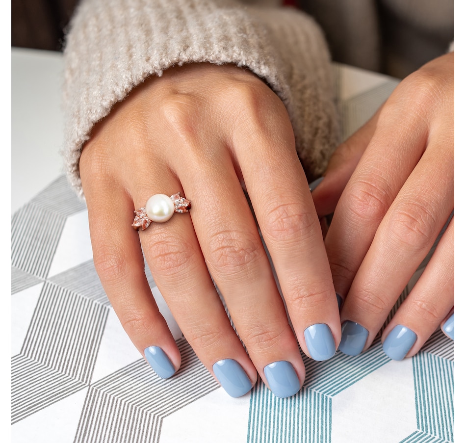 10K Rose Gold 9-9.5mm Freshwater Cultured Pearl And Morganite Cocktail Ring