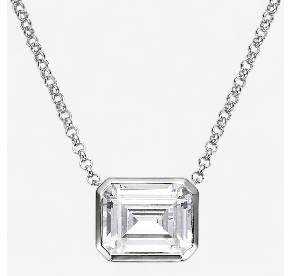 Sterling Silver Shaped Diamonelle Semi Bezel Pendant Necklace