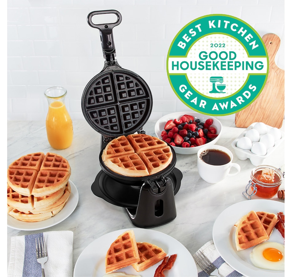 • Cooking surfaces heat evenly and cook 1" thick waffles in minutes