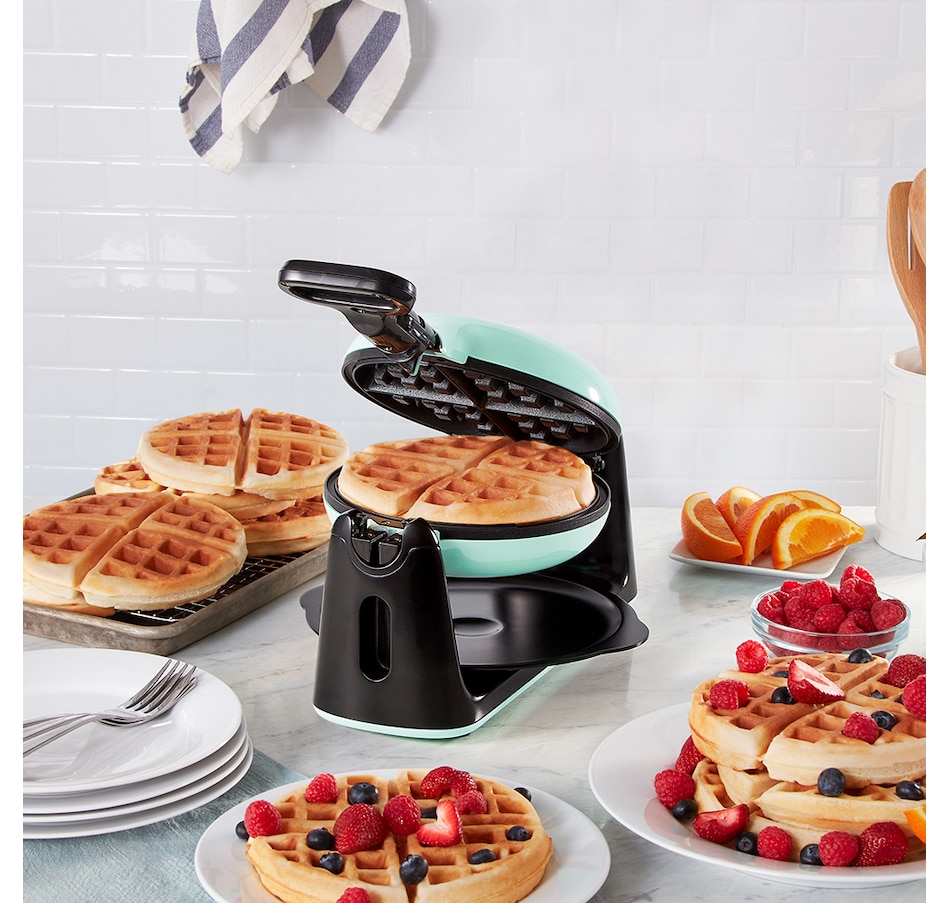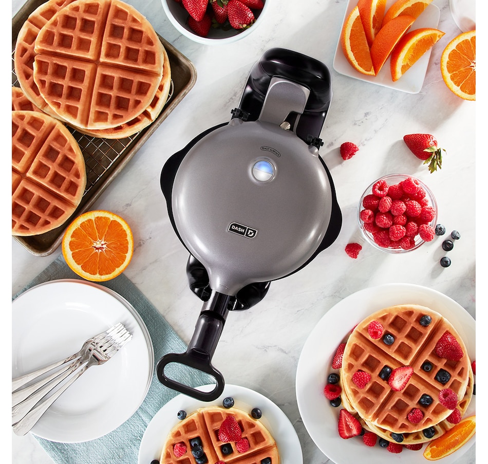 Make delicious and fluffy Belgian 6.5" waffles at home with the Dash Flip! Its TruGlide nonstick surfaces are PFOA-free, so waffles lift cleanly for fabulous results, and the cool-touch handle flips the waffle maker for batter distribution and even cooking results.