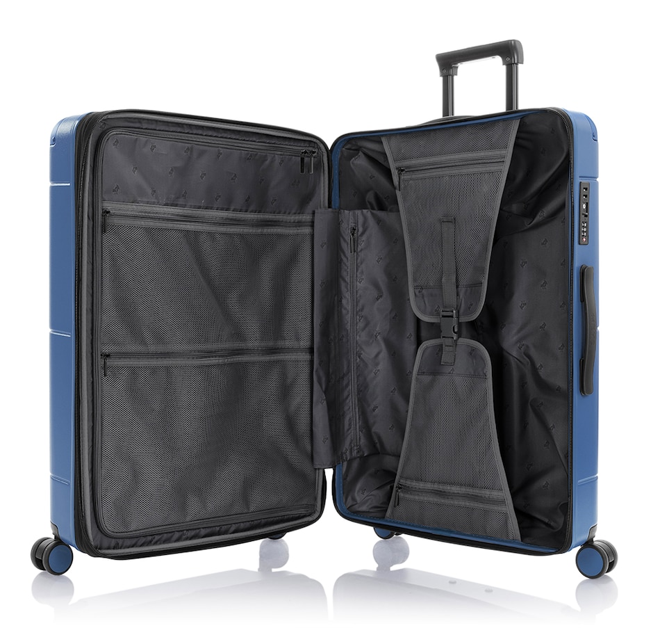 The Heys Zen two-piece spinner set features a chic, modern design with etched Heys logos, a brushed sand finish, and trim that's elegantly colour-matched to the shell. This sophisticated and modern set is lightweight and durable, and offers effortless organization with a fully lined interior and a zippered divider, multiple zippered mesh pockets and buckled compression straps. The lightweight aluminum telescopic handle system with multiple push-button locking heights provides comfortable, ergonomic handling, and the 360-degree dual spinner wheels allow for effortless, smooth and stable movements across multiple terrains. The zipper-released expansion system even allows for an extra 20 percent in packing space when needed!