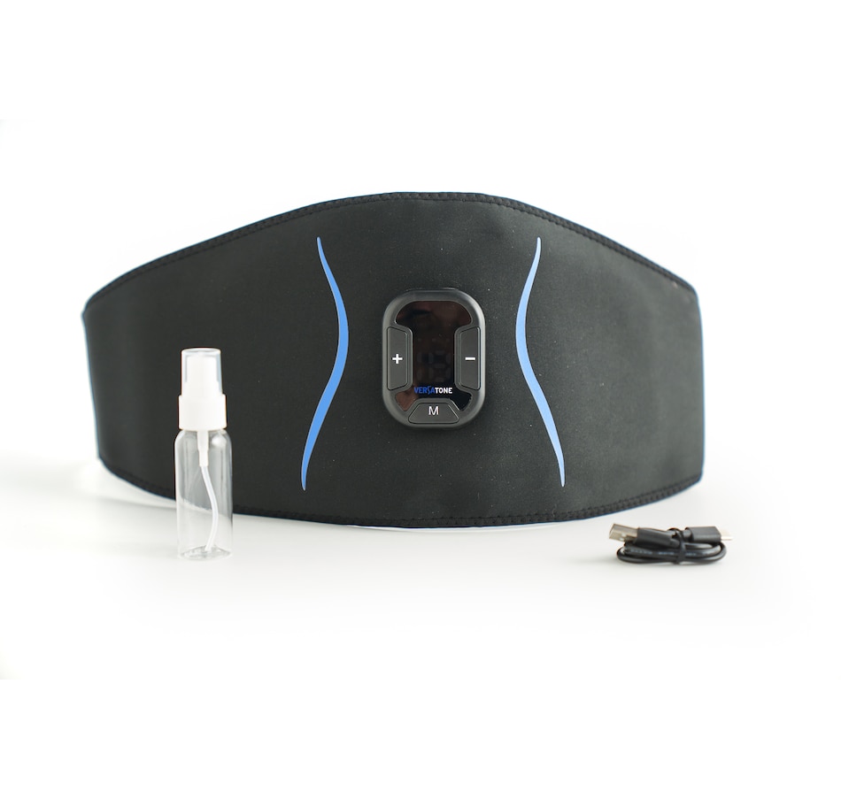 The FitNation Versatone belt provides dual muscle therapies, allowing you to choose between toning and pain relief with one single device. The innovative design eliminates the need for messy gel pads, replacing them with a mist of water from the included spray bottle. Embrace multi-purpose fitness with this fantastic device from FitNation.
