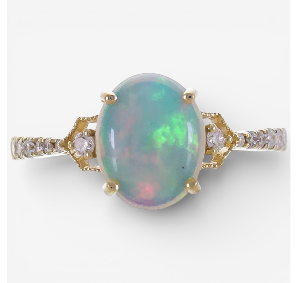 14K Yellow Gold Ethiopian Opal and Diamond Ring