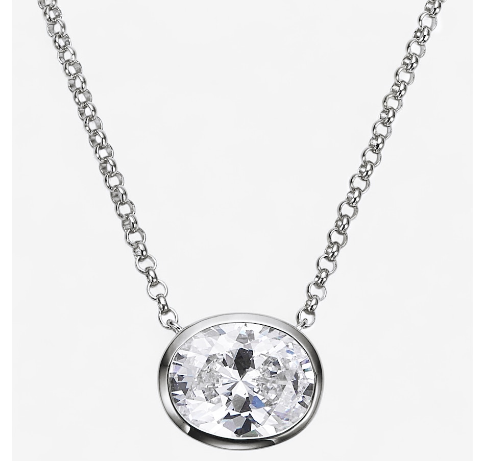 • (1) 10mm x 8mm oval shape, bezel set and faceted Diamonelle (looks like 2.54 ctw of real diamonds)