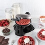 • Cooking surfaces heat evenly and cook 1" thick waffles in minutes