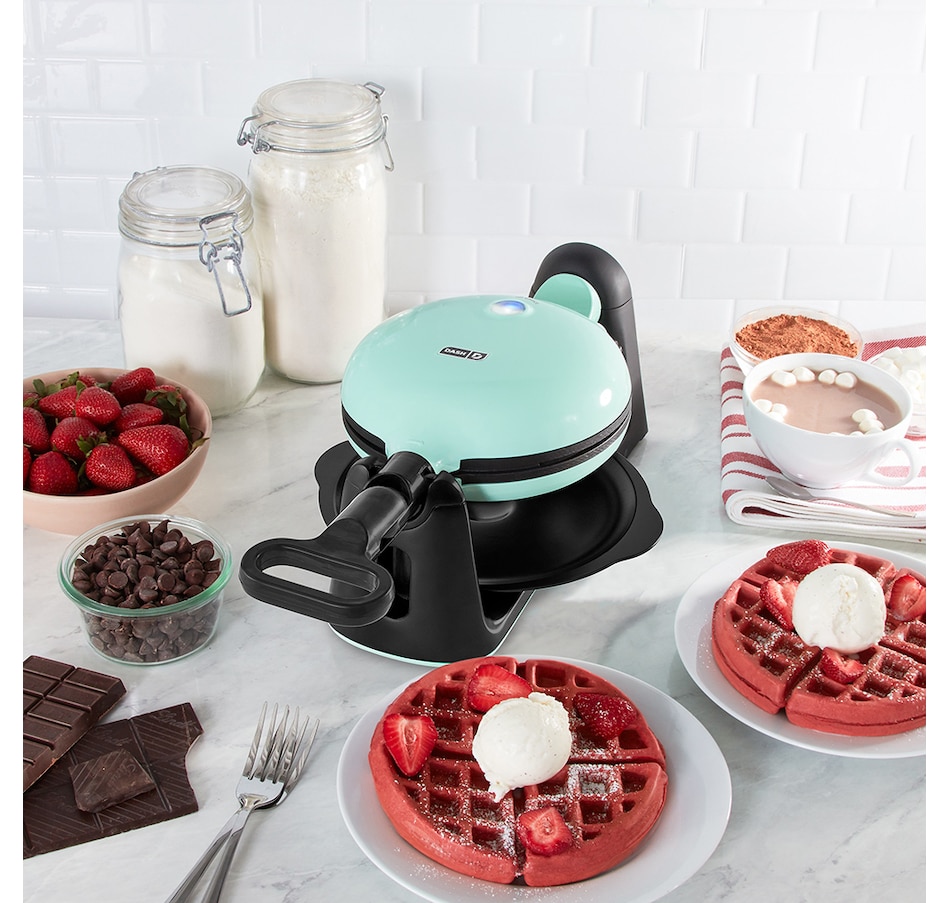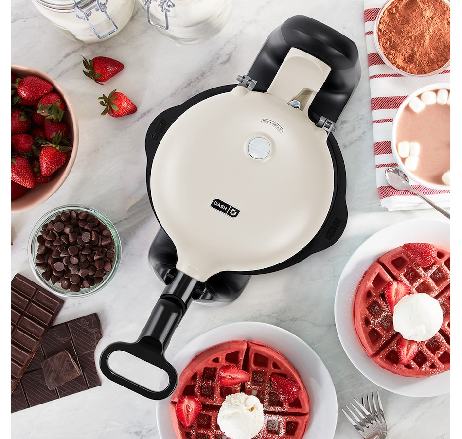 Make delicious and fluffy Belgian 6.5" waffles at home with the Dash Flip! Its TruGlide nonstick surfaces are PFOA-free, so waffles lift cleanly for fabulous results, and the cool-touch handle flips the waffle maker for batter distribution and even cooking results.