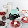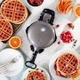 • Two indicator lights turn on when at full temperature and when your waffle is done cooking